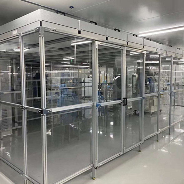 La cabina pulita adotta l'alluminio industriale (o il passaggio di acciaio inossidabile, lo spruzzo quadrati del passaggio del quadrato del ferro) come la struttura, la dotazione d'aria del gruppo dell'unità di filtraggio del fan (FFU), il vetro circostante o il vetro temperato ed il suo livello interno di purificazione può raggiungere 100-10000. È adatto ad aree con gli alti requisiti locali di purificazione nell'area di operazione.